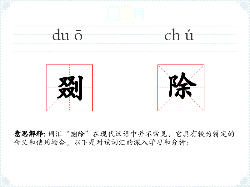 词汇“剟除”在现代汉语中并不常见,它具有较为特定的含义和使用场合。以下是对该词汇的深入学*和分析: