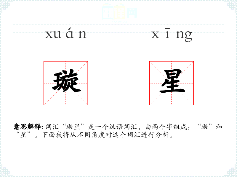 词汇“璇星”是一个汉语词汇,由两个字组成:“璇”和“星”。下面我将从不同角度对这个词汇进行分析。
