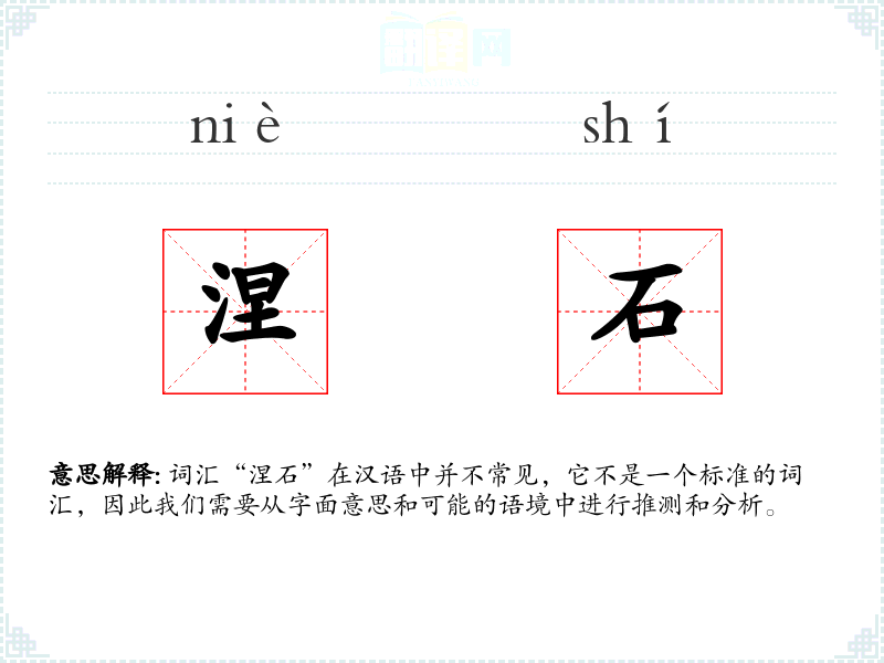 词汇“涅石”在汉语中并不常见,它不是一个标准的词汇,因此我们需要从字面意思和可能的语境中进行推测和分析。