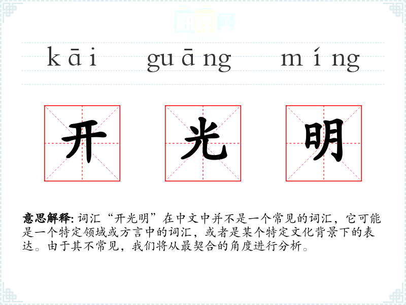 词汇“开光明”在中文中并不是一个常见的词汇,它可能是一个特定领域或方言中的词汇,或者是某个特定文化背景下的表达。由于其不常见,我们将从最契合的角度进行分析。