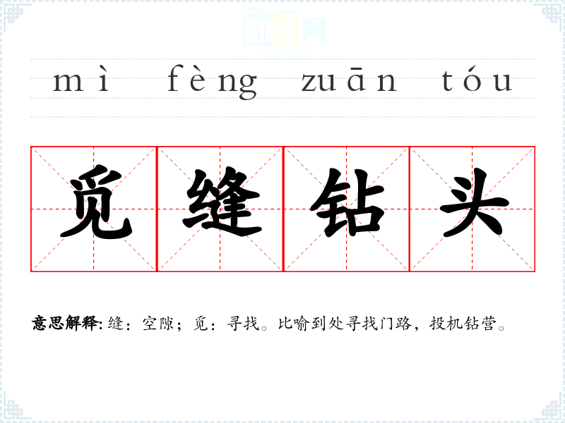 缝:空隙;觅:寻找。比喻到处寻找门路,投机钻营。