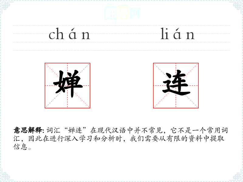 词汇“婵连”在现代汉语中并不常见,它不是一个常用词汇,因此在进行深入学习和分析时,我们需要从有限的资料中提取信息。