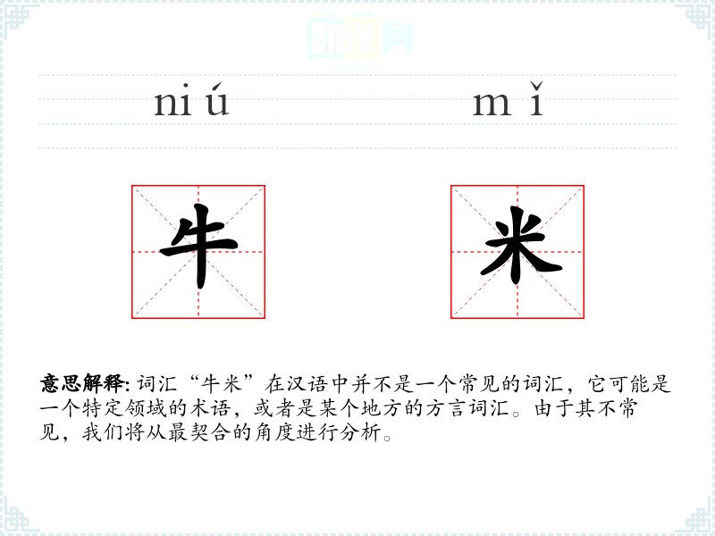 词汇“牛米”在汉语中并不是一个常见的词汇,它可能是一个特定领域的术语,或者是某个地方的方言词汇。由于其不常见,我们将从最契合的角度进行分析。