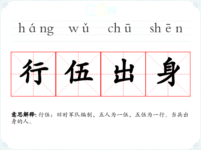 行伍:旧时军队编制,五人为一伍,五伍为一行。当兵出身的人。
