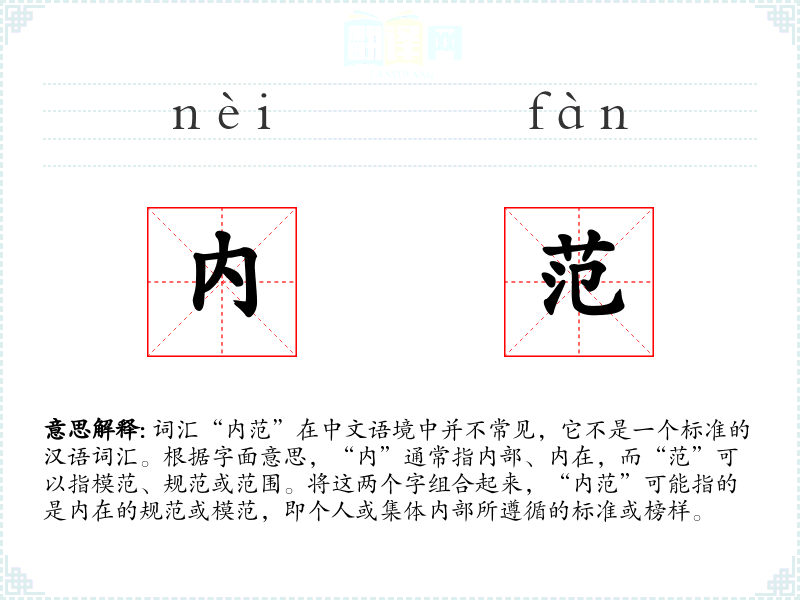 "内范"的意思解释、内范是什么意思由翻译网汉语词典查词提供。