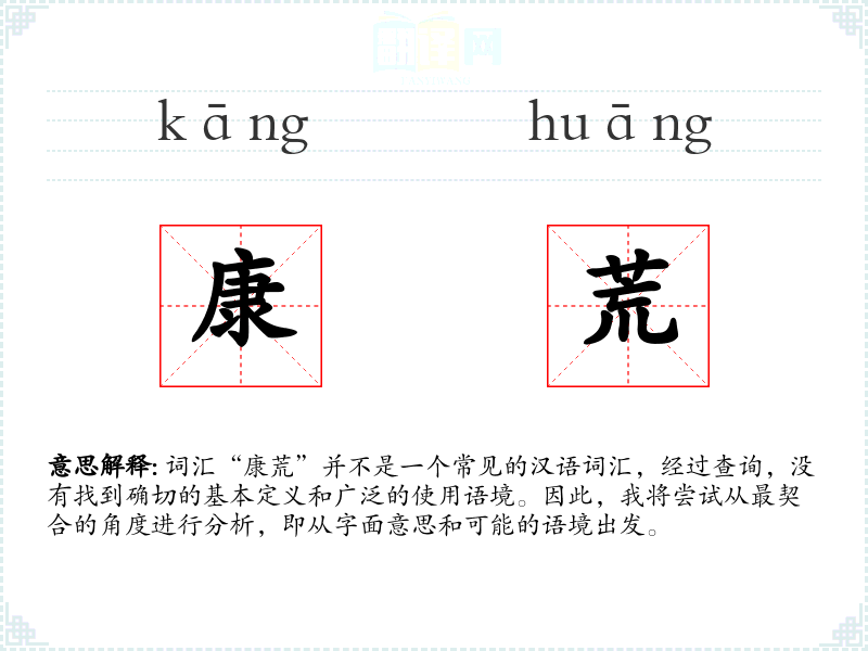 “康荒”这个词汇由两个汉字组成:“康”和“荒”。