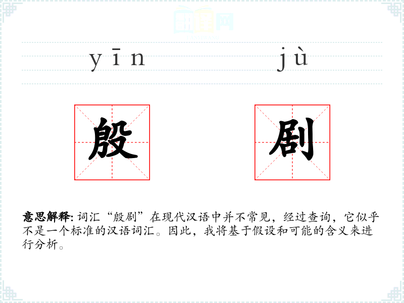 词汇“殷剧”在现代汉语中并不常见,经过查询,它似乎不是一个标准的汉语词汇。因此,我将基于假设和可能的含义来进行分析。