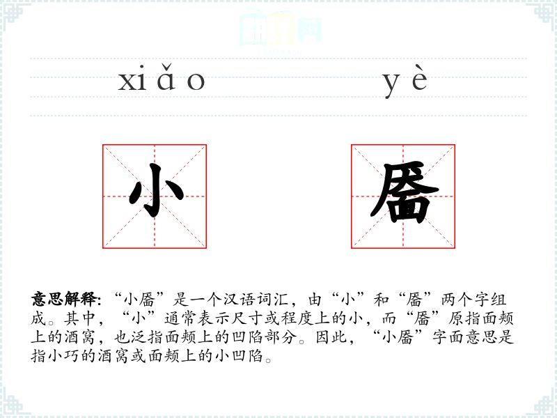 “靥”字最早见于《说文解字》,原意为面颊上的酒窝。随着时间的推移,“小靥”这个词汇在文学作品中被用来形容女性面颊上的小凹陷,逐渐带有一种美的象征意义。