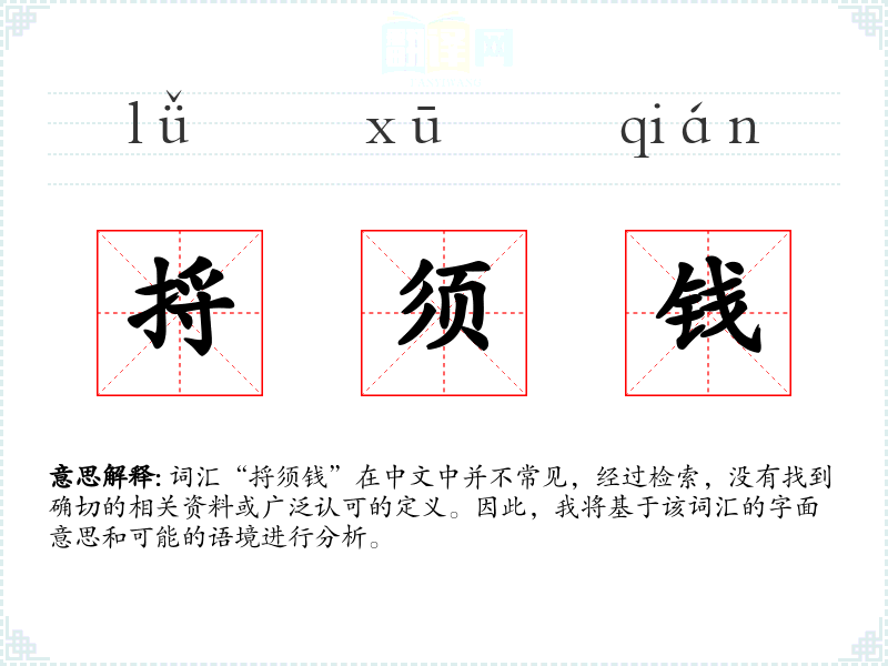 “捋须钱”作为一个不常见的词汇,其含义和用法可能需要更多的上下文信息来确定。在语言学习和表达中,了解和使用标准词汇更为重要,但创造性地解释和使用不常见词汇也是一种有趣的语言探索。