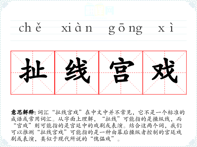 "扯线宫戏"的意思解释、扯线宫戏是什么意思由翻译网汉语词典查词提供。