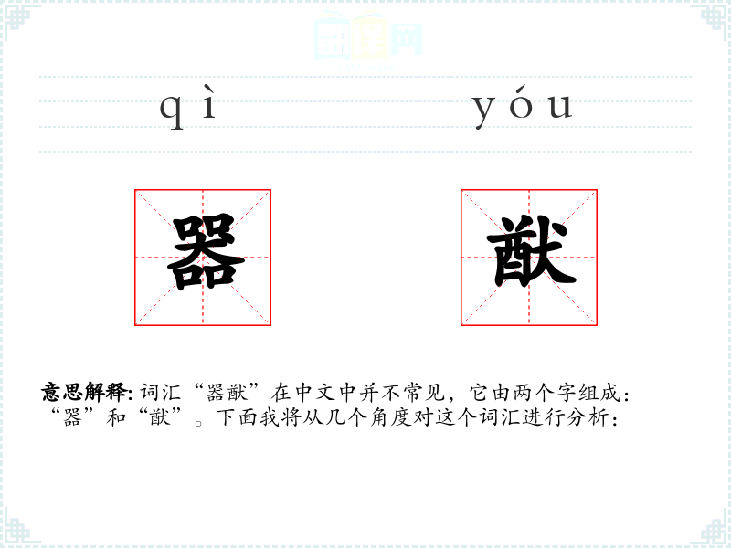 词汇“器猷”在中文中并不常见,它由两个字组成:“器”和“猷”。下面我将从几个角度对这个词汇进行分析: