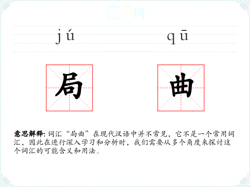 词汇“局曲”在现代汉语中并不常见,它不是一个常用词汇,因此在进行深入学习和分析时,我们需要从多个角度来探讨这个词汇的可能含义和用法。