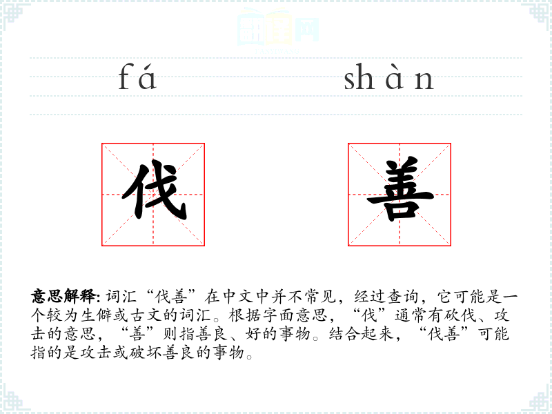 - 理解:伐善是一个描述对善良事物负面行为的词汇,虽然在现代语言中不太常用,但在文学和历史讨论中仍有其价值。
