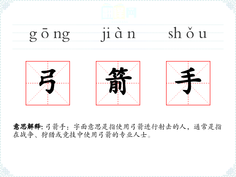 "弓箭手"的意思解释、弓箭手是什么意思由翻译网汉语词典查词提供。