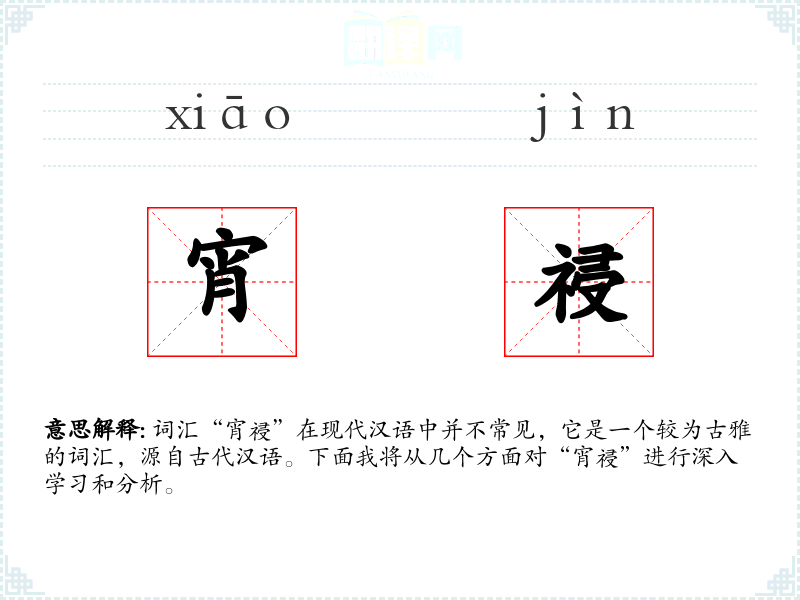 词汇“宵祲”在现代汉语中并不常见,它是一个较为古雅的词汇,源自古代汉语。下面我将从几个方面对“宵祲”进行深入学习和分析。