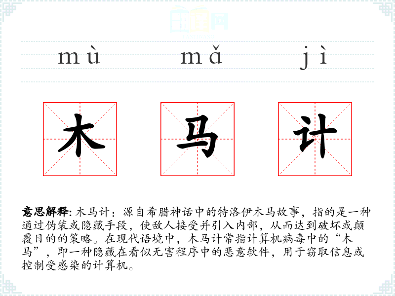"木马计"的意思解释、木马计是什么意思由翻译网汉语词典查词提供。