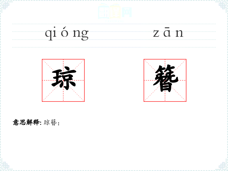 - 字面意思:琼,指美玉或美石;簪,是一种用来固定发髻或帽子的饰物。