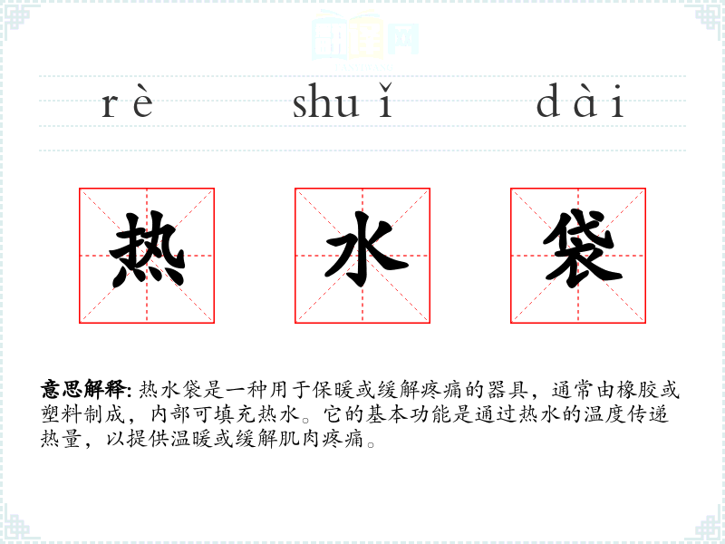"热水袋"的意思解释、热水袋是什么意思由翻译网汉语词典查词提供。