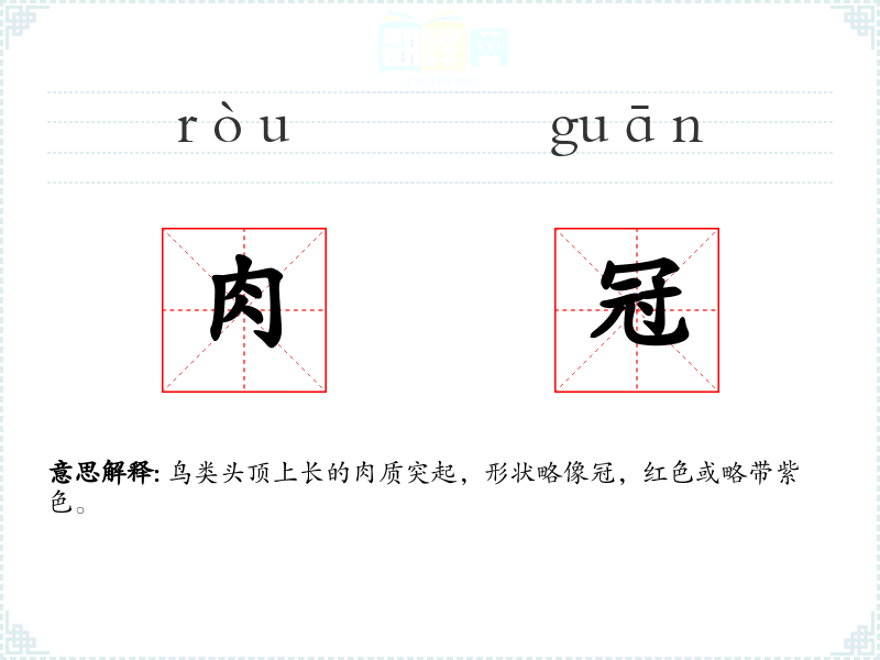 肉冠的分字解释