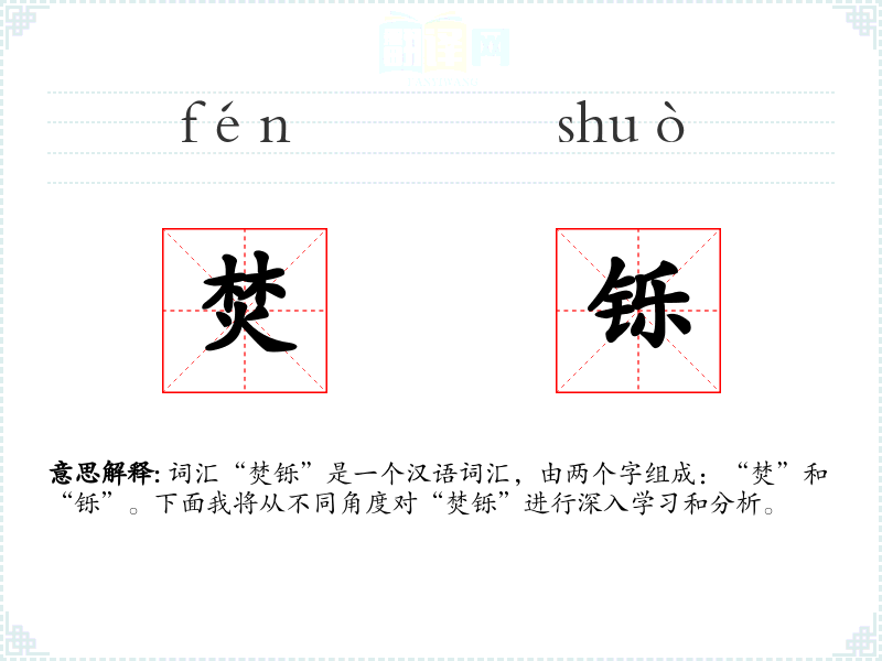 词汇“焚铄”是一个汉语词汇,由两个字组成:“焚”和“铄”。下面我将从不同角度对“焚铄”进行深入学*和分析。