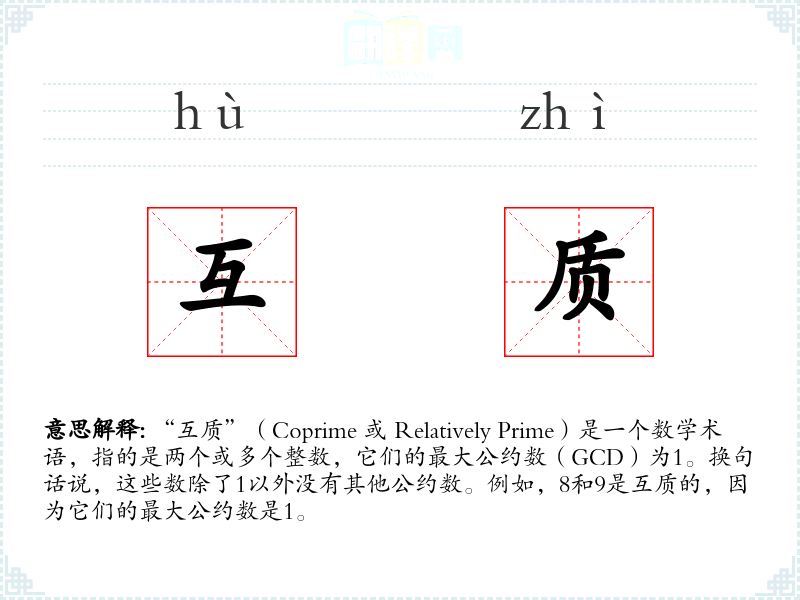 “互质”一词源自数学术语,其英文“Coprime”由“co-”(共同)和“prime”(质数)组成。这个概念在古希腊数学中已有雏形,但直到近代数学的发展,才被正式定义和广泛使用。