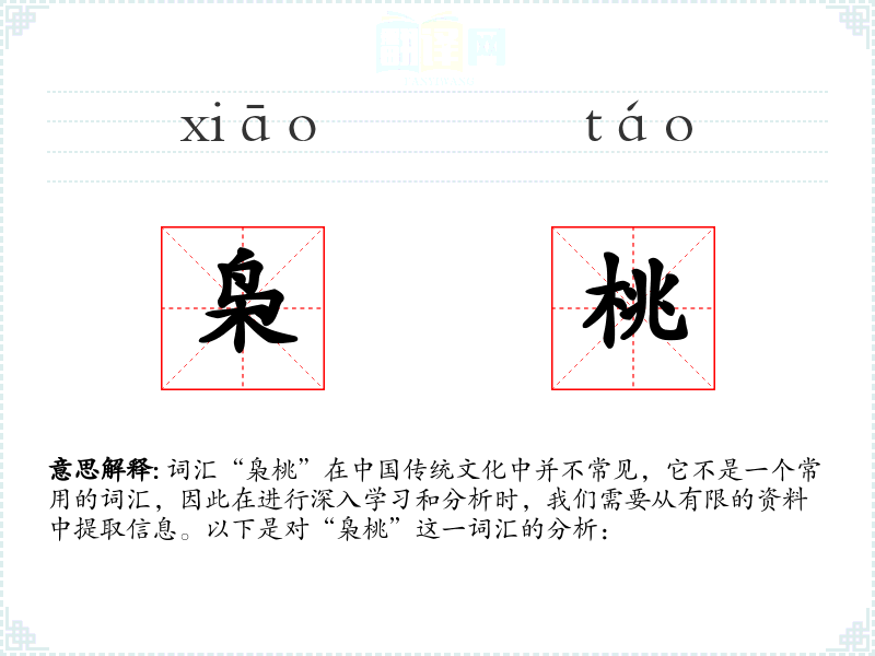 词汇“枭桃”在*传统文化中并不常见,它不是一个常用的词汇,因此在进行深入学和分析时,我们需要从有限的资料中提取信息。以下是对“枭桃”这一词汇的分析: