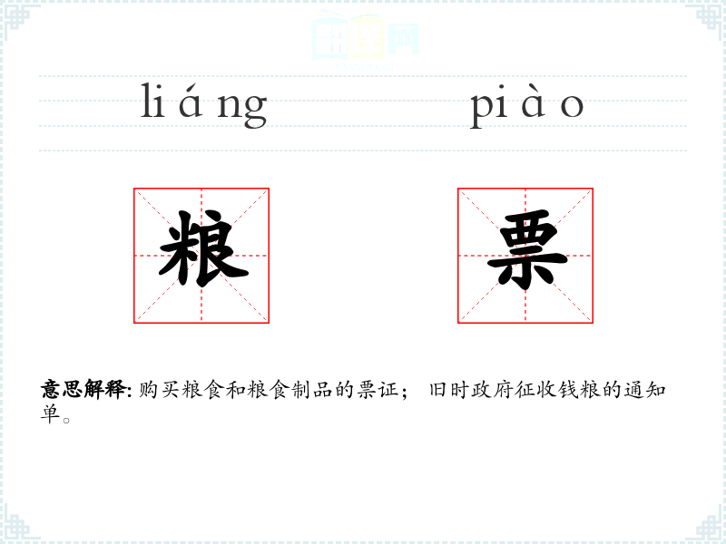 粮票的分字解释