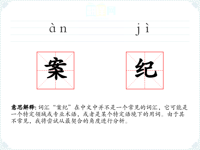 - 反义词:无(由于“案纪”不常见,反义词难以确定)