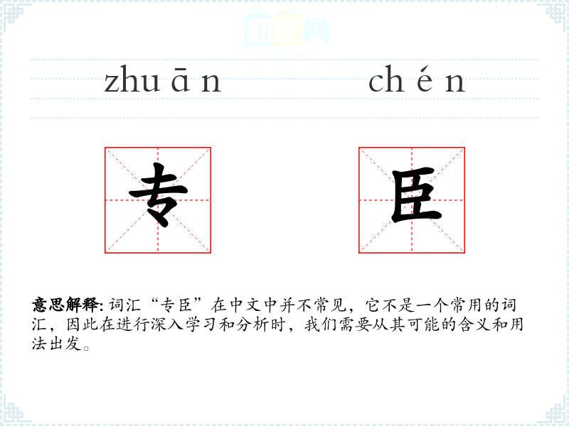 词汇“专臣”在中文中并不常见,它不是一个常用的词汇,因此在进行深入学*和分析时,我们需要从其可能的含义和用法出发。