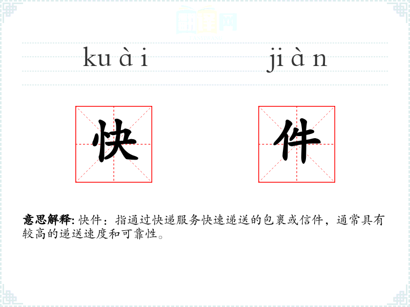 快件作为现代物流服务的重要组成部分,不仅提高了生活效率,也反映了社会对速度和便捷性的追求。在语言学习和表达中,理解和正确使用“快件”这一词汇,有助于更准确地传达信息和情感。