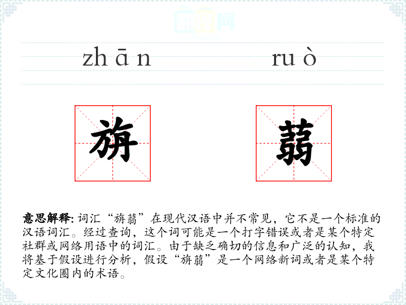 由于“旃蒻”不是一个标准词汇,我们无法给出确切的字面意思和基本含义。如果它是一个网络用语,它可能代表某种特定的含义,比如形容某人或某事物非常初级、不成熟或者是新手。