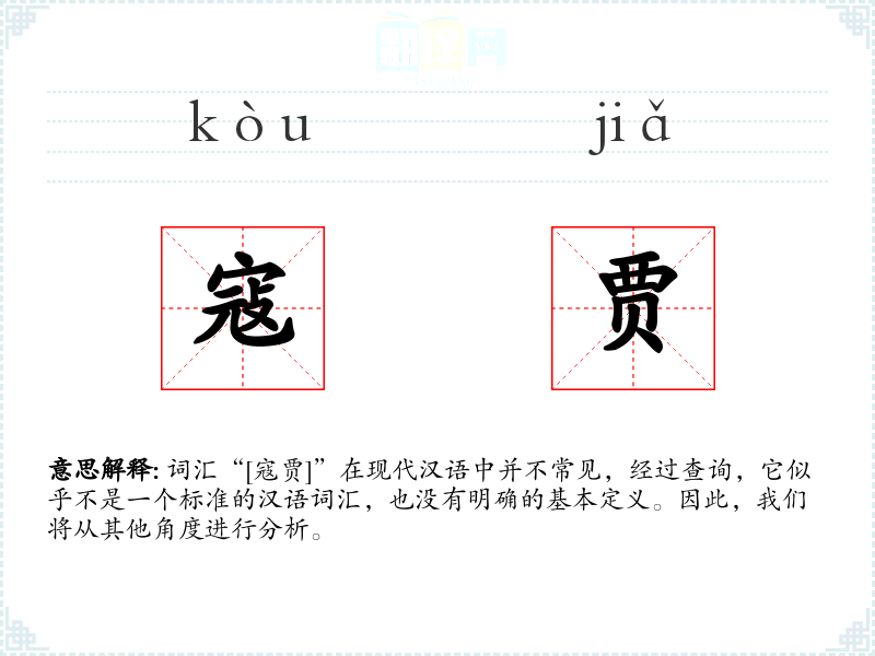 由于“[寇贾]”不是一个标准的汉语词汇,我们无法提供其字面意思和基本含义。