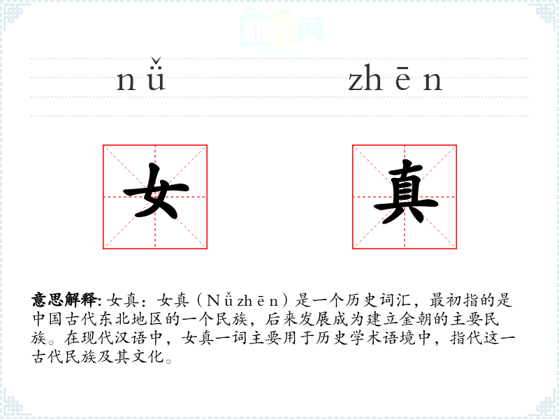"女真"的意思解释、女真是什么意思由翻译网汉语词典查词提供。