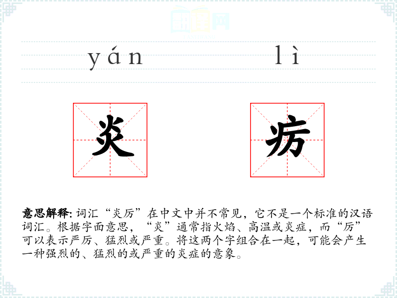 - 字面意思:炎厉可能指的是一种非常严重或猛烈的炎症。