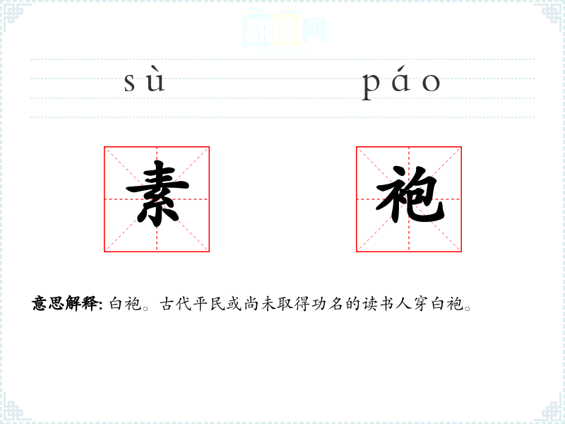 白袍。古代平民或尚未取得功名的读书人穿白袍。