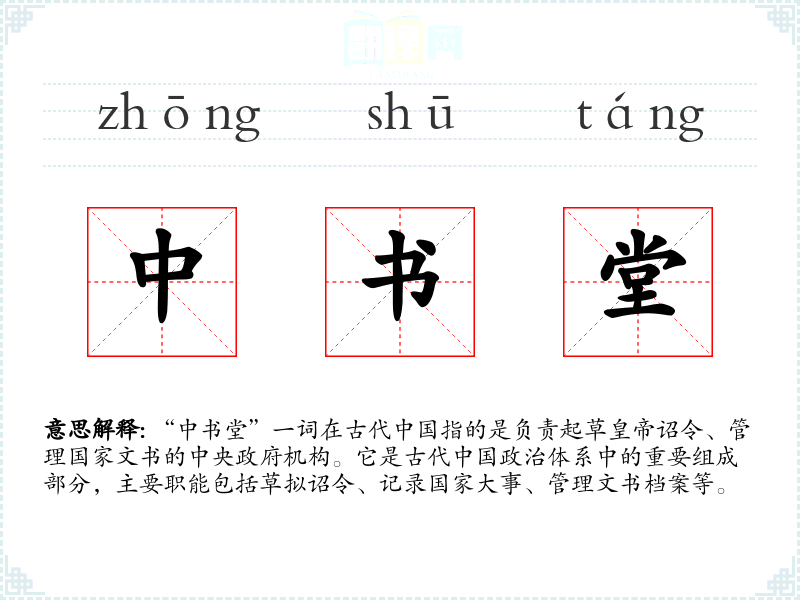 “中书堂”源自汉代的中书省,后经历代演变,职能和名称有所变化,但其核心职责——管理国家文书和起草诏令——基本保持不变。