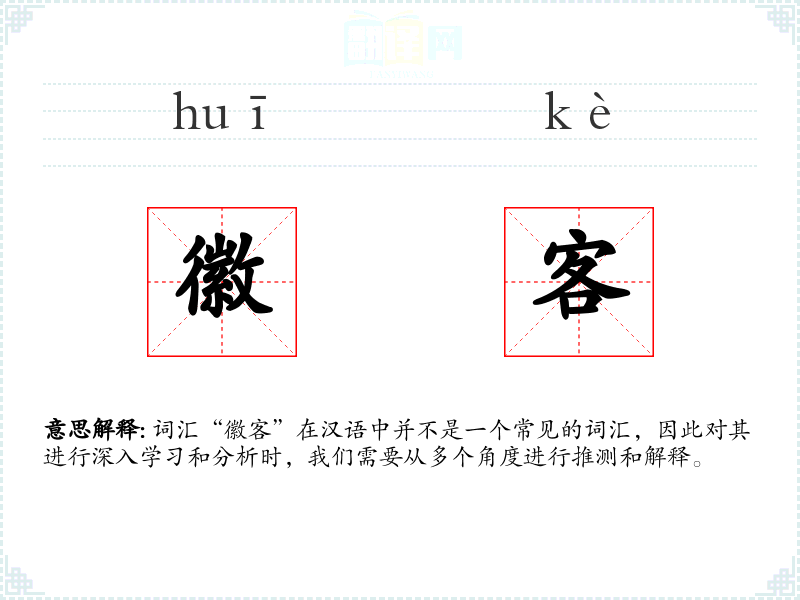 词汇“徽客”在汉语中并不是一个常见的词汇,因此对其进行深入学习和分析时,我们需要从多个角度进行推测和解释。