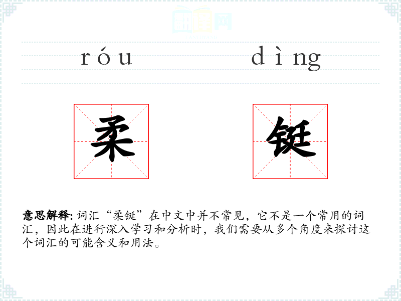 词汇“柔铤”在中文中并不常见,它不是一个常用的词汇,因此在进行深入学习和分析时,我们需要从多个角度来探讨这个词汇的可能含义和用法。