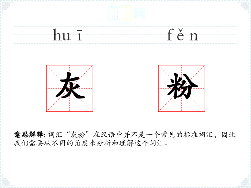 词汇“灰粉”在汉语中并不是一个常见的标准词汇,因此我们需要从不同的角度来分析和理解这个词汇。