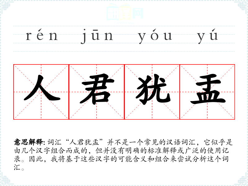 词汇“人君犹盂”并不是一个常见的汉语词汇,它似乎是由几个汉字组合而成的,但并没有明确的标准解释或广泛的使用记录。因此,我将基于这些汉字的可能含义和组合来尝试分析这个词汇。