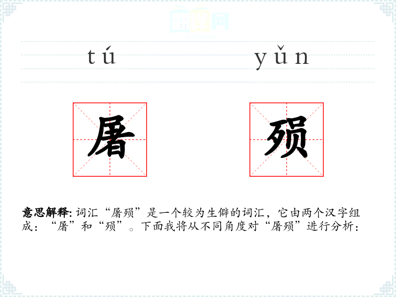 - 词源:“屠”和“殒”都是古代汉语词汇,有着悠久的历史。