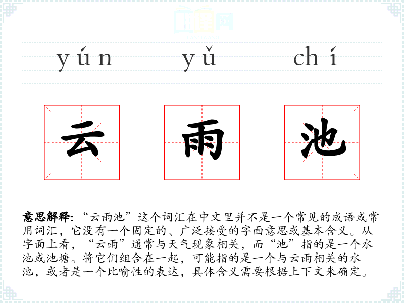 由于“云雨池”不是一个跨文化通用的词汇,它在其他语言或文化中可能没有直接对应的词汇。