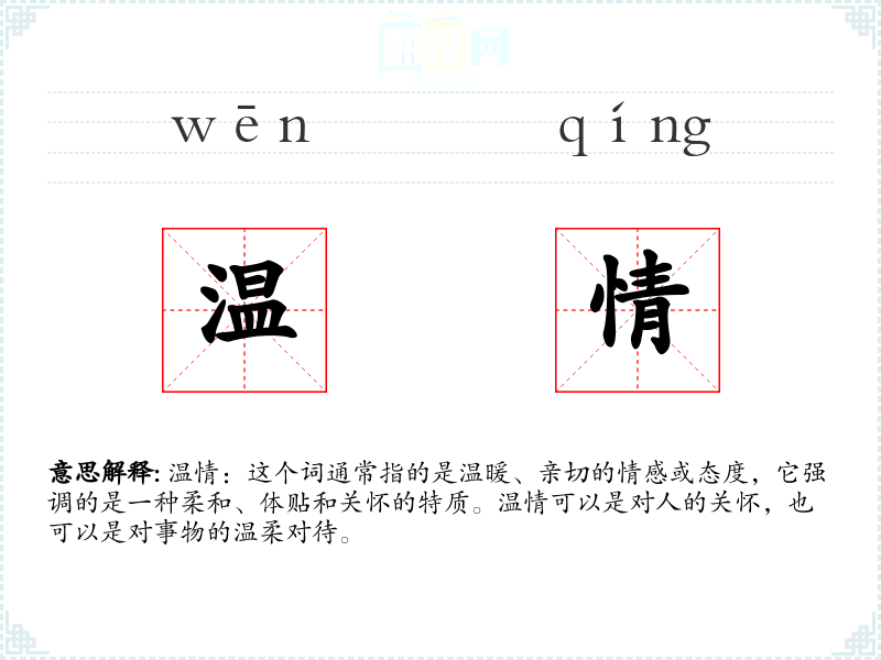 - 同义词:柔情、温存、体贴、关怀