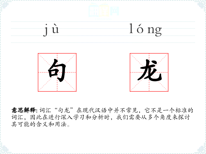 词汇“句龙”在现代汉语中并不常见,它不是一个标准的词汇,因此在进行深入学*和分析时,我们需要从多个角度来探讨其可能的含义和用法。
