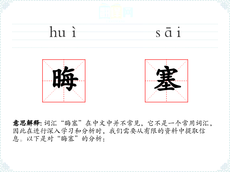 词汇“晦塞”在中文中并不常见,它不是一个常用词汇,因此在进行深入学习和分析时,我们需要从有限的资料中提取信息。以下是对“晦塞”的分析: