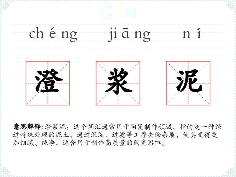 "澄浆泥"的意思解释、澄浆泥是什么意思由翻译网汉语词典查词提供。