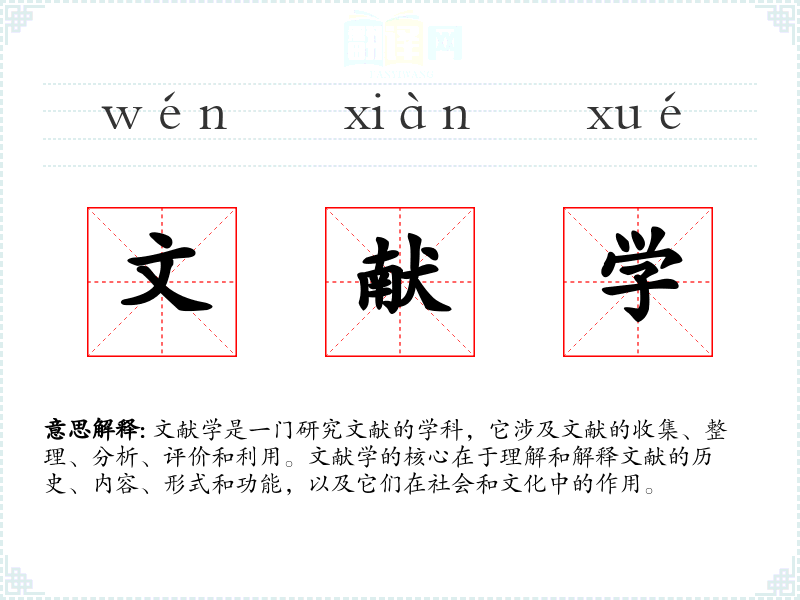 同义词:文本学、手稿学、版本学 反义词:非文献学(指不涉及文献研究的领域或活动)