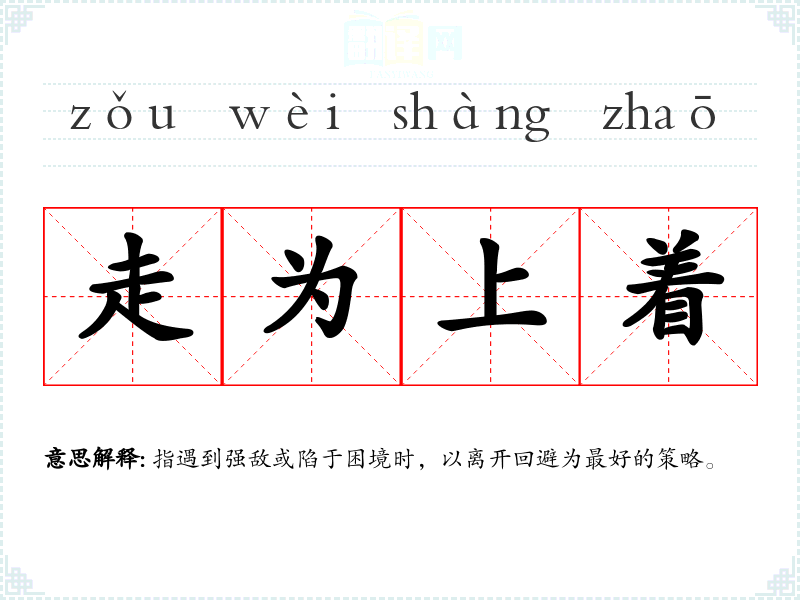 "走为上着"的意思解释、走为上着是什么意思由翻译网汉语词典查词提供。