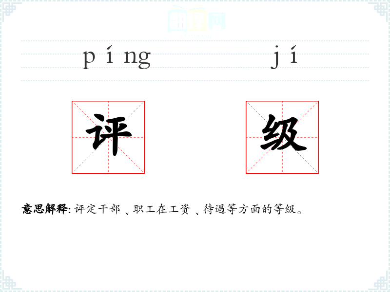 评定干部﹑职工在工资﹑待遇等方面的等级。