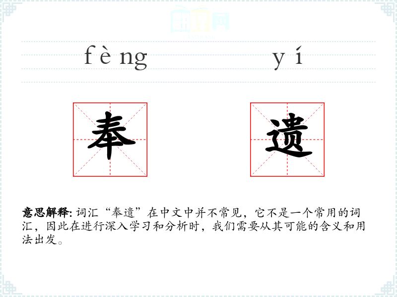 由于“奉遗”涉及的是较为严肃和正式的场合,它可能会让人联想到庄重的仪式或法律文件。